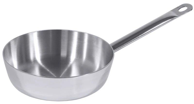 Kupfer-Sauteuse, 2,5 mm starker Mehrschichtenaufbau aus Edelstahl 18/10, Aluminium und Kupfer, induktionsgeeignet, mit Schüttrand, mit genietetem Stielgriff aus Edelstahl