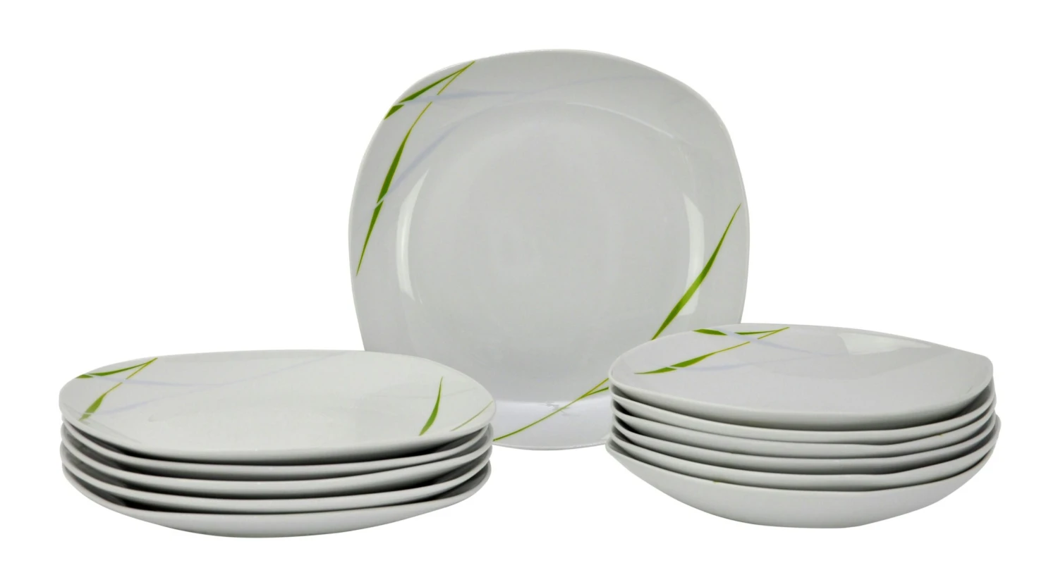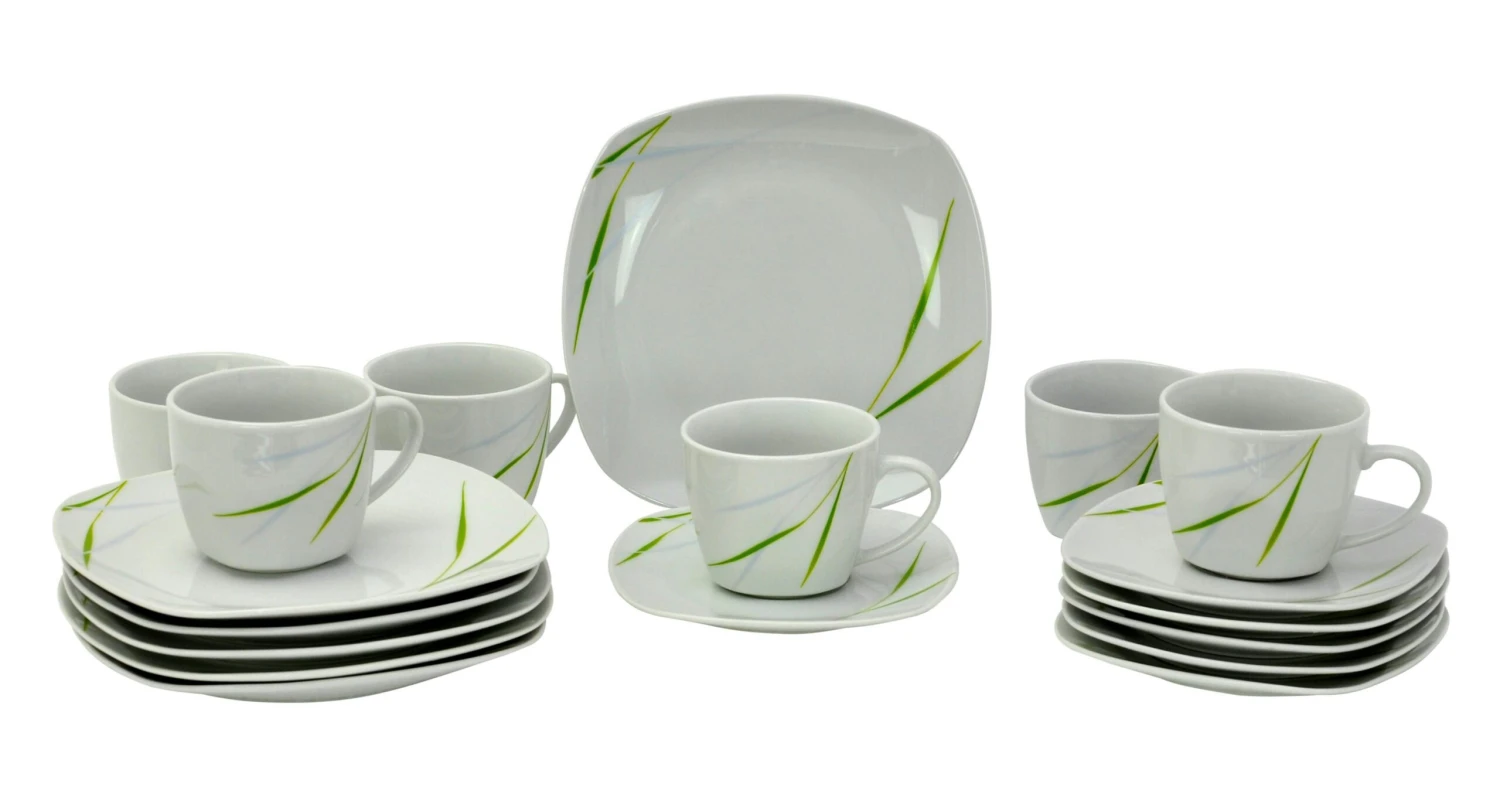 Die leicht eckige Form und das grün / graue Gräserdesign geben dem Kombiservice eine ganze besondere Ausstrahlung.